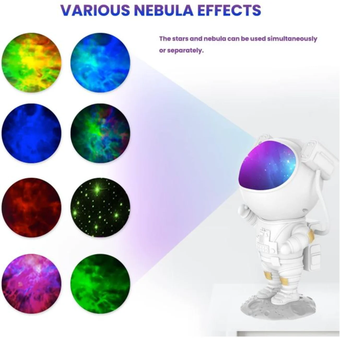 بروجيكتور النجوم على شكل رائد الفضاء كيدير أجواء مريحة وساحرة فالليل، مثالي للأطفال والكبار باش يسترخوا وينعسو فجو هادي وجميل ✨