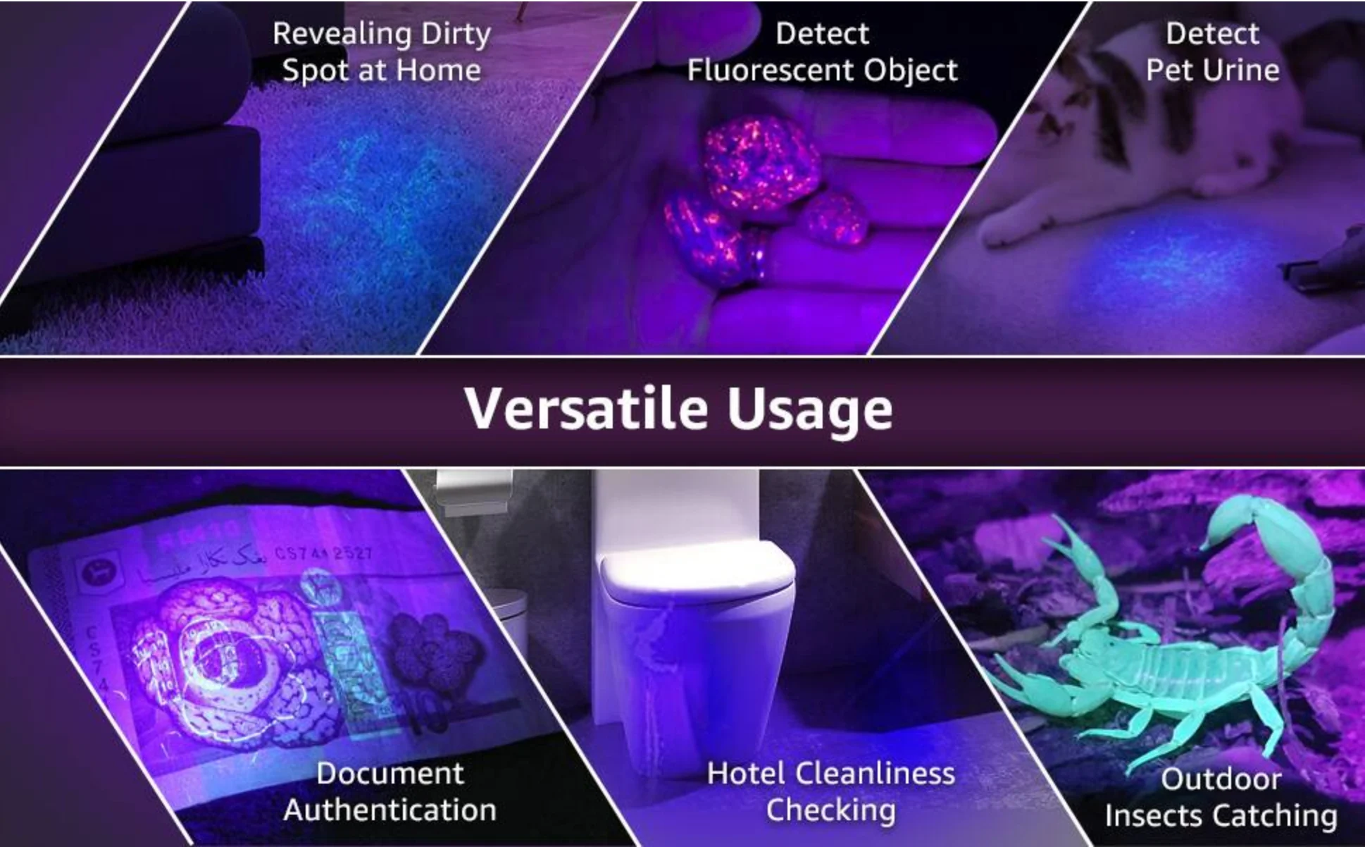 يعطي إضاءة فوق بنفسجية واضحة لرؤية العقارب والبقع غير المرئية.