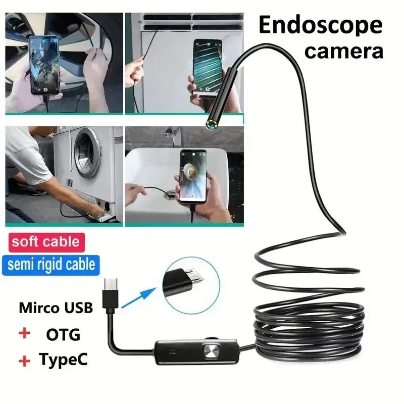 كاميرا Endoscope صغيرة وفعّالة كتخليك تفحص الأماكن الضيقة بسهولة وبوضوح عالي. مثالية للسيارات، المنازل وحتى الأشغال التقنية.